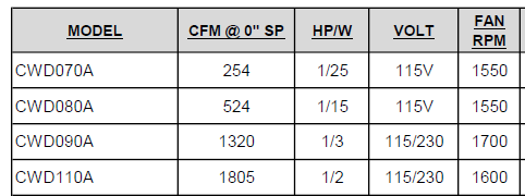 CWD110A - 1/2HP - SIDEWALL CENTRIFUGAL EXHAUST FAN - 230V/1PH/60Hz.