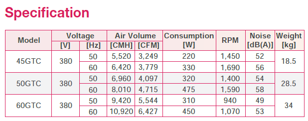The KDK 60GTC models from the High Pressure Series are heavy-duty three-phase industrial fans designed to deliver high airflow under strong static pressure, ideal for factories, warehouses, and commercial kitchens.