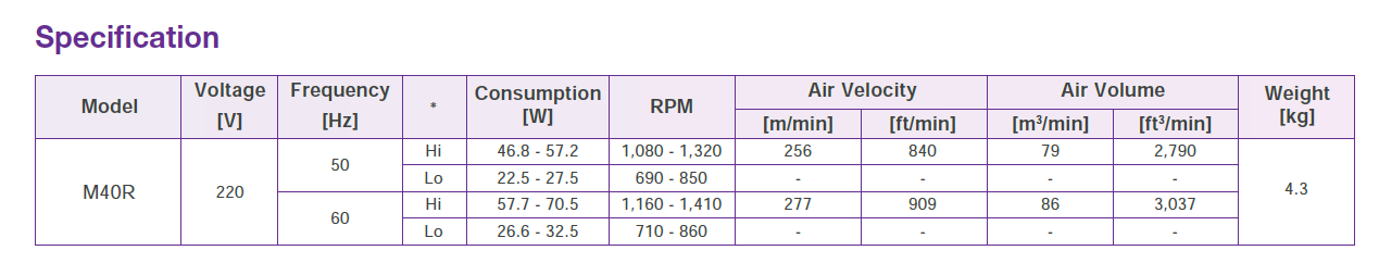 Equipped with a thermal fuse for overheating protection, safety wire, and permanently lubricated ball bearings, the M40R ensures quiet and reliable operation.