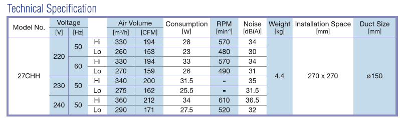 KDK - 27CHH - CEILING MOUNT EXHAUST FAN - 220V - مروحة شفط