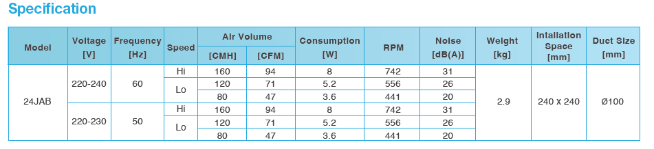 KDK - 24JAB - CEILING MOUNT EXHAUST FAN - 220V - مروحة شفط