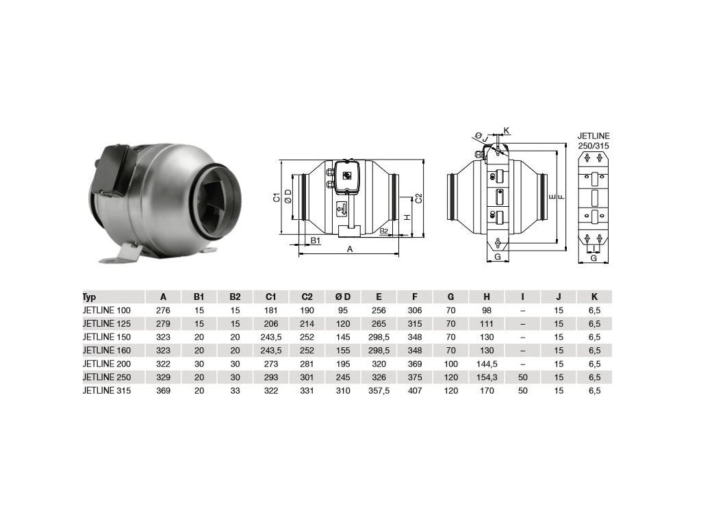 | JETLINE 100 | 177 | 2990 | 230V/1HP | Ø4 |