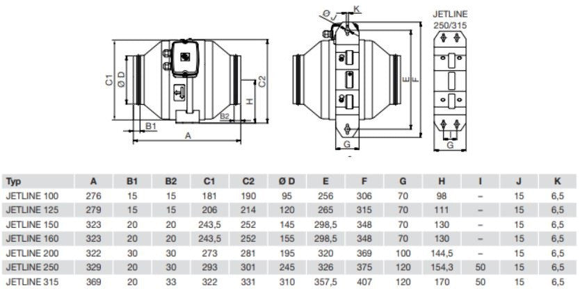 | JETLINE 125 | 273 | 2940 | 230V/1HP | Ø5 |